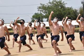始業式からちょうど1ヶ月で体育大会という日程であったため、短い練習期間となりましたが、それぞれが体育大会に向けて積極的に準備を進め、同時に感染予防にも気を配っている姿が見られました。応援団の生徒たちはゴールデンウィークにも学校に集合して、熱心に練習に取り組んでいました。