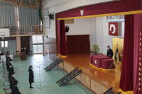 先週までの寒さから一転、暖かく春を感じられる今日2月28日、表彰式と卒業式予行、同窓会入会式が行われました。