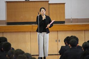 | 教務主任の講話 (三原先生) | 進路指導主事の講話 (黒木先生) | 生徒指導部長の講話 (山﨑先生) |