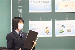 | 「日本とスイスの貧富の差」 久枝さん(2年) | 「フクロウとミミズクの生態」 石坂くん(2年) | 「広がる表現の場」 松本さん(2年) |