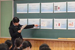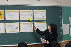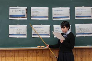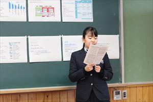 | 「少子化と保育施設の関係」 松本さん(2年) | 「スポーツ障害と予防法」 増田さん(2年) | 「看護師が不足する原因」 宮山さん(2年) |