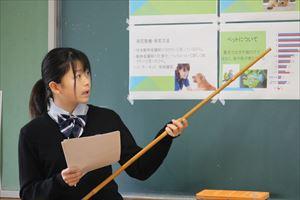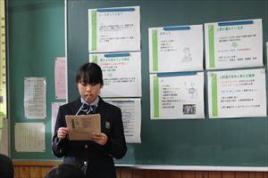 | 「日本近海の漁業の現状」 遠坂くん(2年) | 「放射線と医療の関わり」 飯田さん(2年) | 「乳酸菌の効能」 岩﨑さん(2年) |