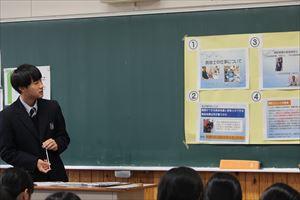 1月26日(日)、総合的な探求の時間「プロメ・プラン」究発表会を開催し、2年次生を中心に探究活動への取組の成果を発表しました。午前中は、八代清流高等学校で2年次生の課題研究ポスターセッションを実施しました。1年間かけて取り組んだ研究の成果を8枚のスライドにまとめ、とても分かりやすく説明を行いました。質疑応答でも、相手を意識した説明をする姿が見られました。