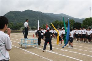 午後からは、開閉会式の練習を行いました。赤団、黄団、青団、白団、緑団それぞれが、自分たちの特徴を表現した楽しい入場行進を見せてくれました。各団の団長を中心によくまとまっているように感じました。