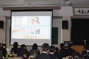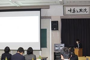 午後からは、校内の選考委員会で選ばれた2年次8名が発表を行いました。外部から参加をお願いした審査員の方々の前で8分間の探究活動の発表を行いました。探究活動への思いや、そこで発見した課題を解決するためのアクション、または、課題の再設定や今後の見通しなどについて堂々と発表を行いました。審査員の方々からの質問にもしっかりと対応する姿が見られました。また、激励の言葉を受け、今後の探究活動にも意欲がますます出てきている様子も伺えました。