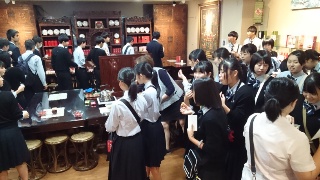 民芸品店で最初のお買い物、日本のみんなにどんなお土産がいいか悩んでいます。