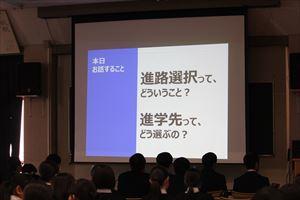2月20日(木)、LHRの時間に1年次は進路講演会を行いました。株式会社リクルートマーケティングパートナーズの宮本 滉平さんを講師にお招きし「自分に合った進学先の選び方」について講演していただきました。「進路選択」と「進学先」について、ご自身の経験談を入れながらとても分かりやすく丁寧に説明していただきました。進路講演中は真剣に自分の進路に向き合う生徒の姿が見られ、進学意識が高まりました。講師の先生には遠方よりお越しいただき誠に大変ありがとうございました。