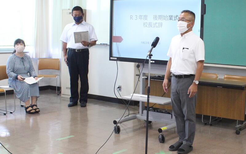 10月1日(金)、オンラインによる後期始業式・新任式がありました。生徒は各教室で式に参加し、新たな気持ちで後期のスタートを切りました。