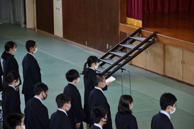 その後、盛髙さんが、「一日一日を大切にし、私たち一人一人が掲げる『理想の自分』に向かって努力することを誓います」と堂々と力強く新入生代表として宣誓しました。