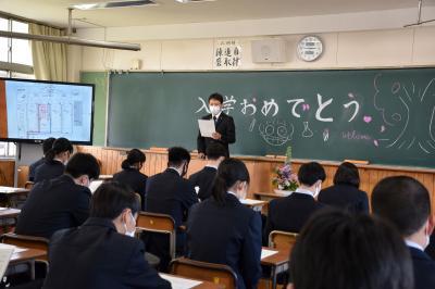 式後には、各クラスで担任・副担任によるHRの時間でした。明日からは新しい高校生活が始まります。新入生が一日も早く八代清流高校の生活に慣れて、楽しく充実した高校生活となるよう、2・3年次生と全職員でサポートします!