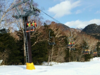 午後の練習はリフトを使って登り、転びながらも、ほとんどの生徒がスイスイ滑って下りて来られるようになりました。