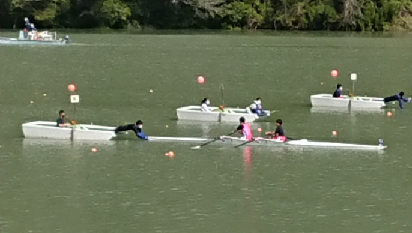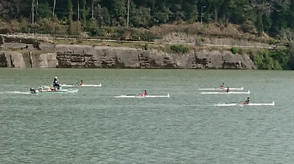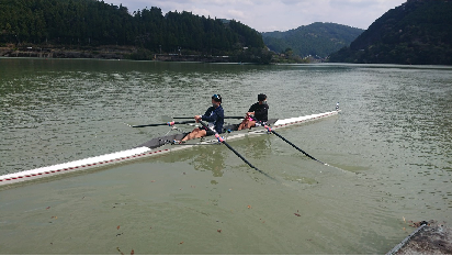 3月26日から29日まで静岡県浜松市天竜ボートコースで行われた第32回全国高等学校選抜ボート競技大会に出場しました。本大会の数日前に豪雨によりコースが全壊し、大会関係者や出場校のボランティアによって1000mに変更してレースが実施されました。250m間隔のブイしかないきわめて厳しいコースであり、大会日程の変更による公式練習の中止など、さまざまな変更に対応しなくてはいけませんでした。初出場の八代清流高校ボート部のメンバーは不安と緊張でレースの初日を迎えました。女子ダブルスカルは予選6位、男子シングルスカル予選5位と2クルーともに予選敗退でしたが、初めての全国大会を最後まであきらめずに漕ぎきることができました。悔しい気持ちもありますが、次の目標に向けて頑張りたいと自分たちで意欲を見せてくれました。この大会に参加するにあたりたくさんの皆さんの応援や暖かい言葉をかけていただきありがとうございました。これからも八代清流高校ボート部をよろしくお願いします。