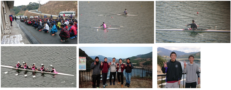 ボート部です。正月恒例のウィンターズカップに参加しました。この大会は、毎年西日本地区のボート選手が参加する大会で今年も約300名の参加者が天候のよい菊池市斑蛇口湖ボートコースに集まりました。大会前に地震があり不安もある中でしたが、1年次部員2名は必死に漕ぎ冬場の練習の成果を出すことができました。また、この大会には昨年度卒業生の5名も参加し八代清流高校ボート部として賑やかに参加させていただくことができました。全国選抜を逃した今年、これからの練習にしっかり身を引き締めて頑張ってほしいと思います。