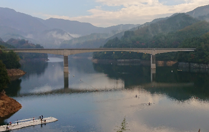 11月7日(土)~8日(日)に菊池市班蛇口湖で行われた九州合宿に2年次生藤原くん、清水さん、宮山さんの3人で参加しました。今回の合宿では九州各県から60人の選手が集合し、シングルスカルで6000mタイムトライアルを実施するなど充実した練習を行うことができました。全国選抜の出場を決めた3人ですが、九州の強豪チームの選手と一緒に漕ぐ中で力不足を感じていましたが、自らの課題を見つけることができた合宿でした。3月の全国選抜に向けてしっかり頑張りたいと思います。