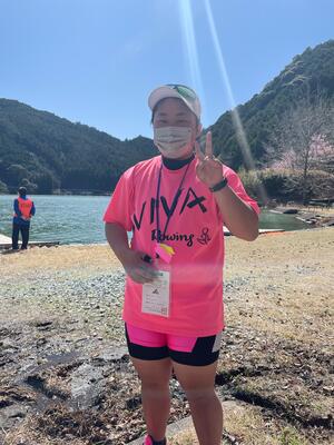 地震の影響で、菊池斑蛇口湖は未だ1500mのコースしかとれないため、初めての2000mのレースでしたが、最後まで諦めることなく漕ぐことができました。選手にとって、大変大きな経験となり、今後の大会に向けての糧となりました。たくさんの応援をありがとうございました。