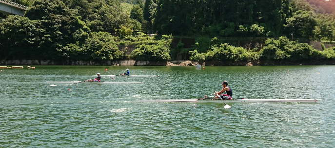 8月8日から八代清流高校は夏休みに入りました。7月の豪雨災害の後から球磨川で乗艇練習が全くできないボート部でしたが、菊池市の班蛇口湖で数日間練習をしました。新型コロナウィルスの感染拡大もあり、練習時間の短縮、三密を避け、手洗い、うがい、消毒、体温測定の徹底を行い、いつもと違う緊張感で練習を行いました。生徒たちも高校総体代替大会以来、久しぶりの乗艇練習に喜んでいました。保護者の皆さん、菊池市のボート関係者の皆さん、他にもたくさんの方に協力して頂き、真夏の熱い日差しの中、技術向上と漕距離の確保ができる練習に取り組みました。本当にありがとうございました。この練習では新入部員の1年次生も初めてのコースデビューに挑戦し、緊張しながら1000mコースを漕ぎきることができました。短い夏休みでしたが、大会が実施される日まで、ボート部の『一心一漕』の気持ちを大切に頑張ります。