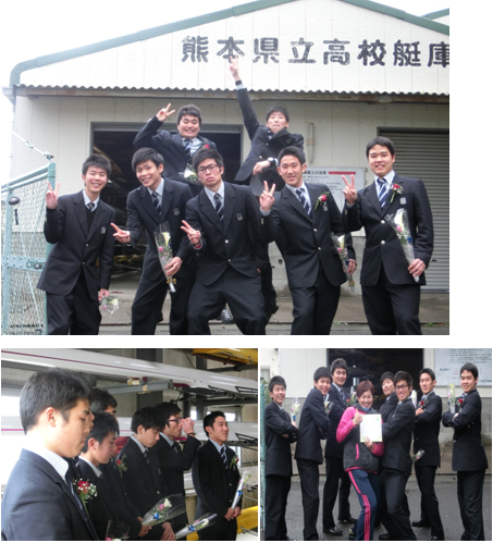 3月5日、3年生の3名は卒業後、ボート競技を大学で続けます。3月初旬から新しい大学ボート部での親友せい合同合宿に参加する生徒のために3年生集まって送別漕ぎをしました。懐かしいメンバーで楽しそうに湖面を漕ぐ姿に感動しました。