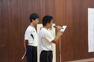 全国大会出場部 推戴式 放送部代表挨拶 激励の言葉 生徒代表 生徒会長 激励の言葉 冨下校長