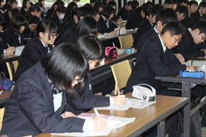 その後、始業式が始まり、校長挨拶では「春は新たな夢と希望の時期です。自分の価値あるものを見つけ、探し出してください。そして、夢と希望を胸に精一杯頑張ってください。」と話がありました。