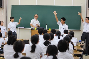 8月22日(火)、夏休み明け全校集会の終了後、1学年はラーニングルームでLHRを行いました。学年主任から、「チャンスは誰にでもあり、諦めないことの大切さ」について講話がありました。