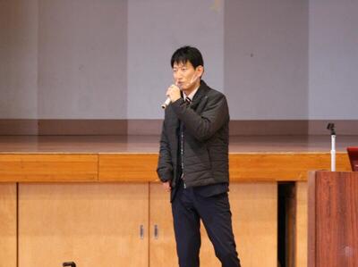 11月18日(木)、人権教育講演会を実施しました。八代市役所職員でパラ卓球アスリートの垣田斉明さんを講師にお招きし、「一歩踏み出そう、無駄にはならない」というテーマでお話をしていただきました。垣田さんのこれまでのご経験をもとに「一歩が道を拓く」ということや、自分が取り組んだことは無駄にはならず、「経験、知識、人脈として返ってくる」というメッセージを伝えていただきました。生徒からの質問に対するお返しにも、皆がこれから生活したり、部活などの競技をしたりしていくうえでの大きなヒントとなるものがありました。小さな一歩でも、勇気を出して踏み出すことの大切さを考える時間となりました。