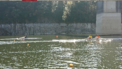 レースに向かう女子ダブルスカル 2年次:清水さん、宮山さん