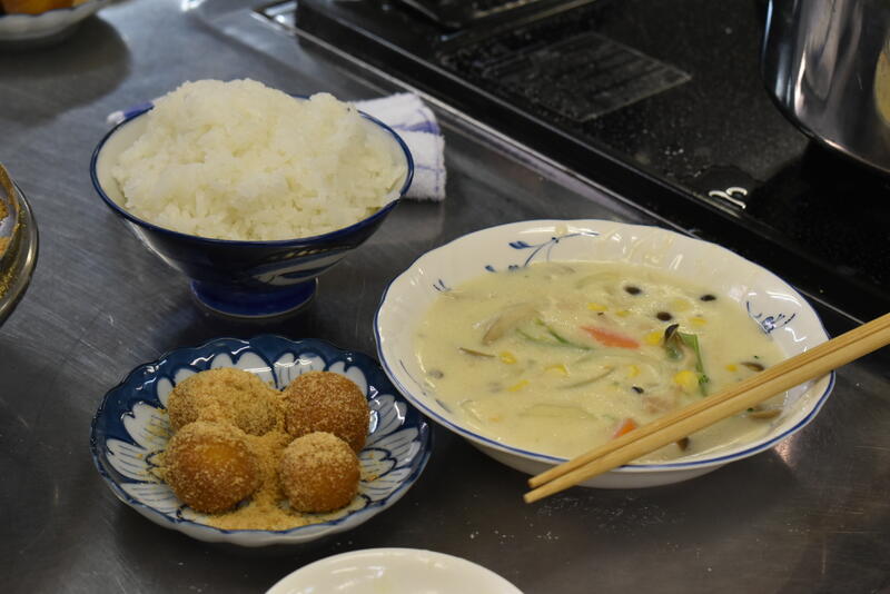 から来ていただきました。食事に関する大切なお話と実習としてツナシチュー・きな粉団子・ごはんを班ごとに分かれて作りました!毎年楽しみにしている行事の一つです。