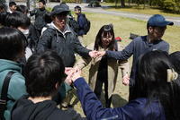 次に、「人間知恵の輪」をしました。声を掛け合いながら、つながれた手の輪を解いていくレクリエーションです。