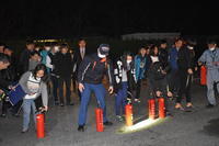 次に、訓練用の水消火器を使用しての訓練を行いました。