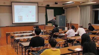 9月24日(木)医療法人榮邦会池田クリニックの池田稔医師を講師に招き性教育講演会を行いました。講演では、「大人の身体の基準」「身体の仕組と手入れの方法」「性の男女平等とは」「性」=命のつなぎ方 以上4つのテーマに沿って説明がありました。医者としての専門的な見地から、男女に係る性等について、力強く説得力のあるお話を聞きくことが出来ました。本日は遠方から、遅い時間までの講演ありがとうございました。
