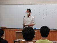 6月4日(金)の3限目に定通総体の選手推戴式が行われました!大会に参加する卓球部(5名)、バドミントン部(14名)、ソフトテニス部(5名)の選手紹介があり、その後、ソフトテニス部主将の宮尾君が選手宣誓を行いました。最後に村木校長先生が「相手をリスペクトして、最後まで正々堂々と全力でプレーしてください。」と激励の言葉を送られました。