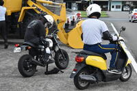 また、講習会の後半では各車両の実技講習が行われました。車とバイクに乗る生徒は、交通ルールを再確認して安全運転意識を高めました。
