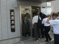 1社目は高原木材株式会社で、事業紹介をしていただいた後、実際に使う重機や木材加工を見学しました。