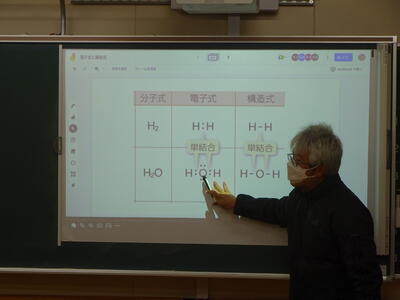 電子式や構造式の作り方について、Jamboardを交えて内容の解説を行いました。