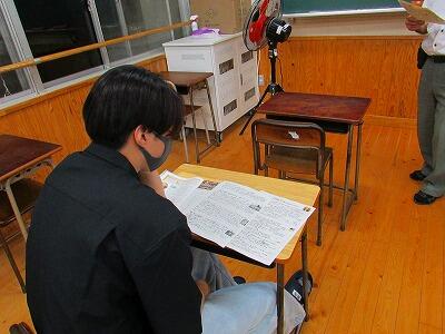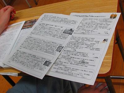 続いて、時事問題、新聞『社説』等のプリントも配付され、説明されています。