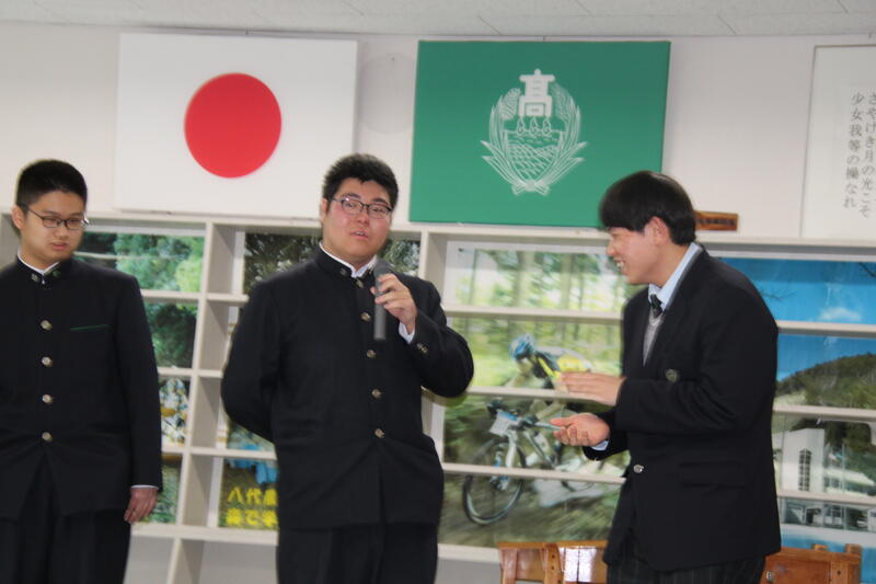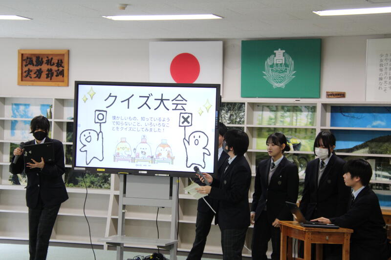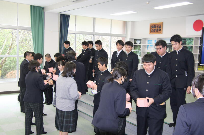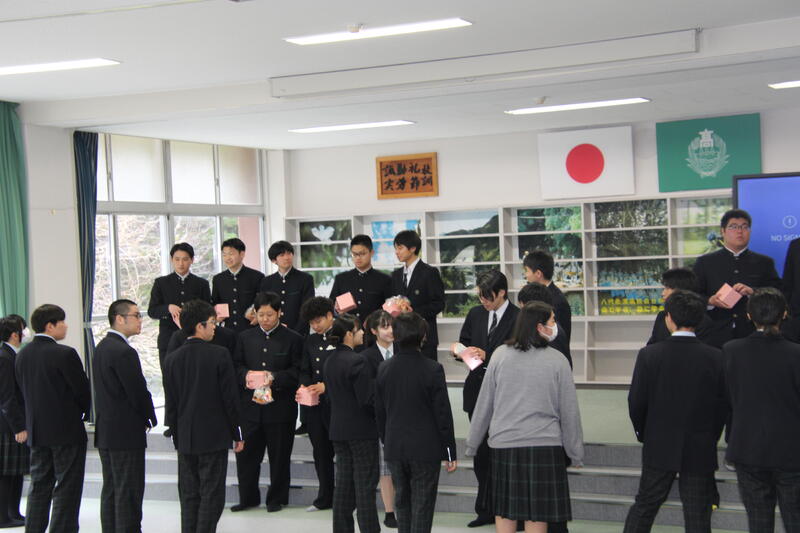 本日は予餞会(3年生を送る会)が行われ、1・2年生が、卒業していく3年生の先輩方に出し物をして送り出しました