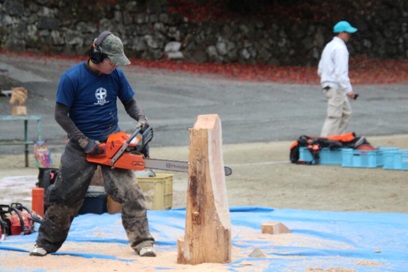 最初は1本の丸太が何種類ものチェーンソーで削られていって・・・