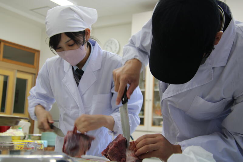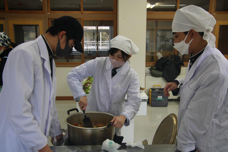 ジビエ料理部門では、地域の鳥獣害対策に取り組む生徒たちを中心として、ジビエ肉を活用したカレー作りを行いました給食・食事八代林研の方々が作られたジビエのタタキと一緒に昼食でふるまわれ、美味しくいただくことができました花丸