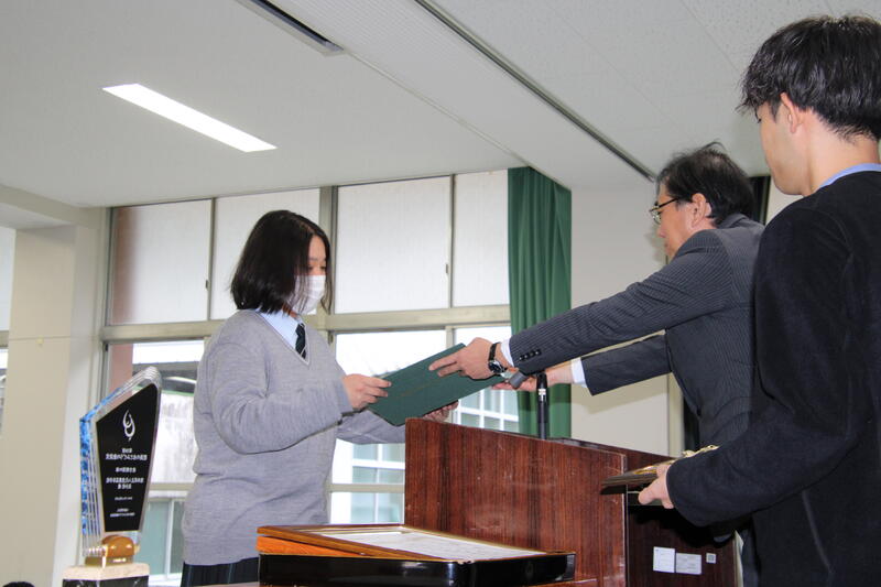 ― 参加されていた他の学校の発表が素晴らしく、その中で最優秀賞をいただいたことはとてもうれしく思いました。今後も仲間や先輩たちと支え合って全国大会に臨みたいと考えています。