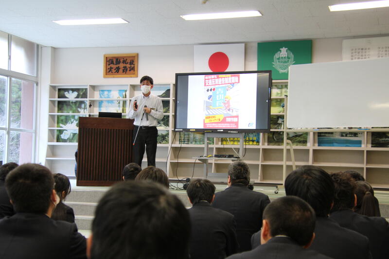 CAT八代自動車学校から上村様、嶋﨑様を講師としてお招きし、交通事故の危険性や交通安全遵守の大切さについてご講演いただきました