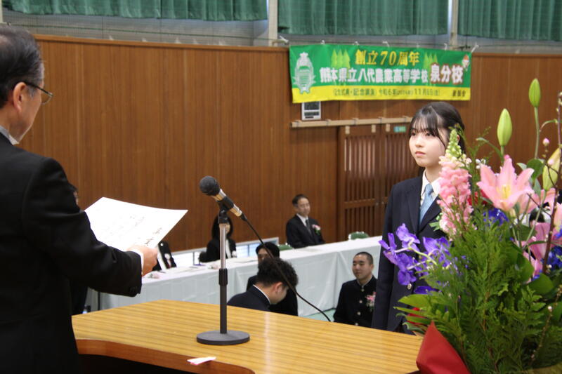 去る3月1日、令和7年度熊本県立八代農業高等学校泉分校卒業証書授与式が挙行されました