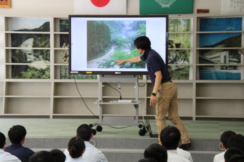 昨日、1~3年の全学年生徒が林業視察研修に参加しました