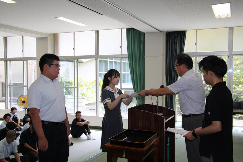 県内、泉分校でも様々な場面で頑張っている生徒がたくさんいますその中で、各学校の代表が熊本県の木村知事から表彰を受けました