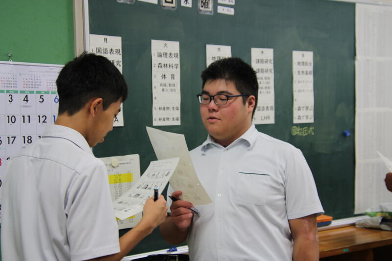 2年生:①活かすA/自習②数学Ⅰ③森林科学