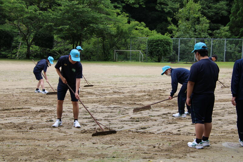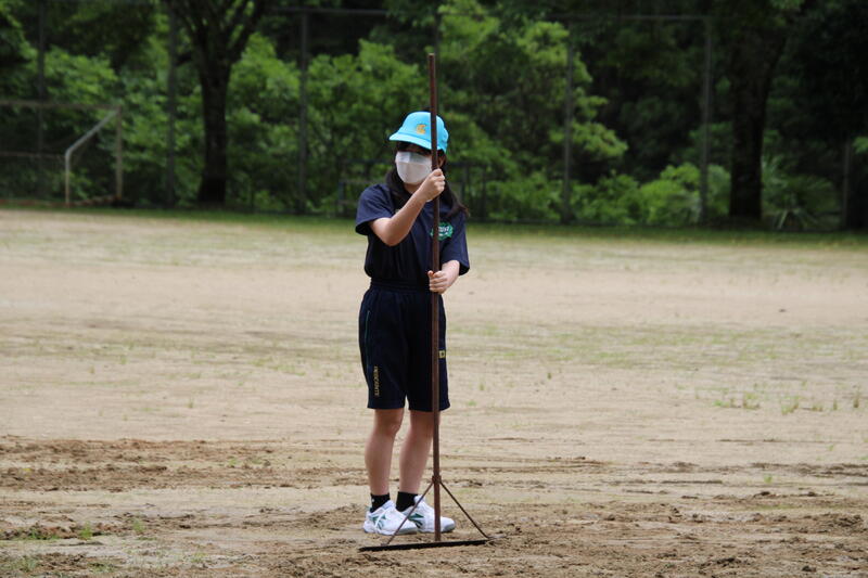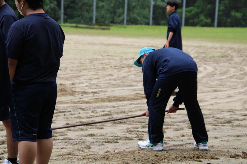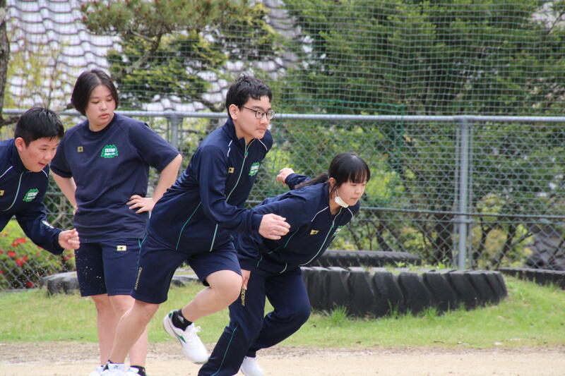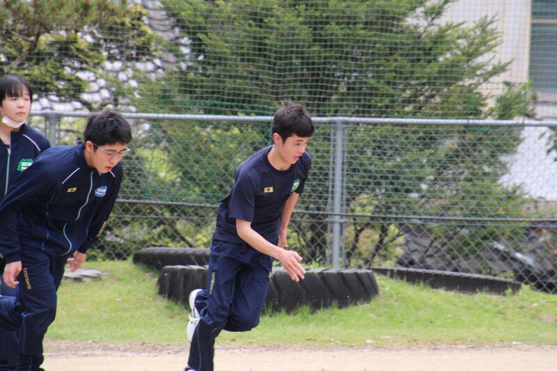 午前授業最終日となる本日、グラウンドでは1年生が体育の授業で50m走の練習を行いました急ぎ