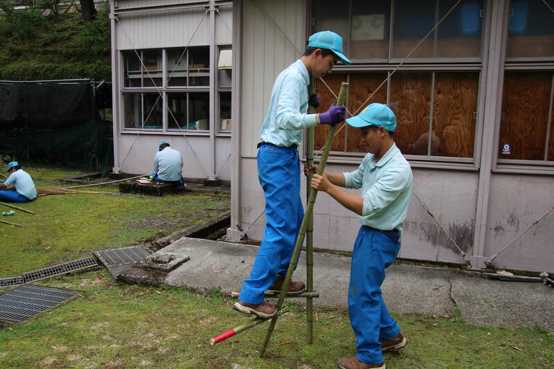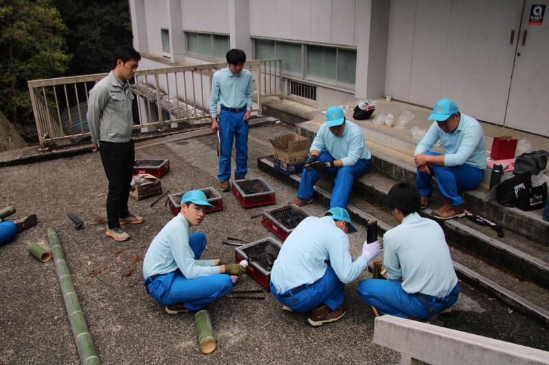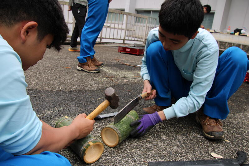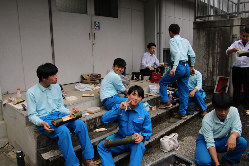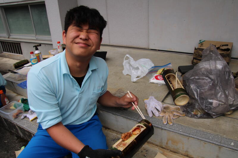 3年生グリーンコースの実習では竹を飯盒にしてお米を炊きました家庭科・調理