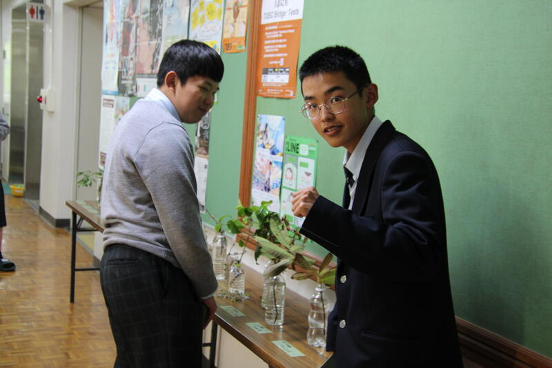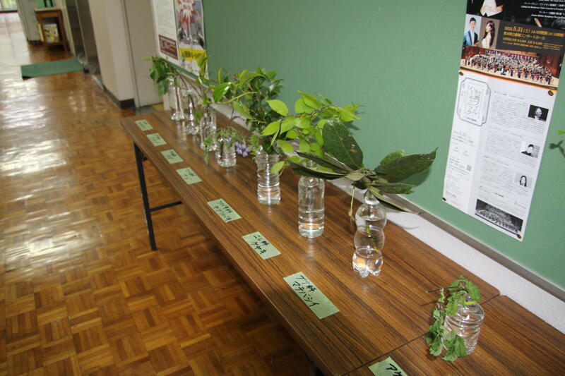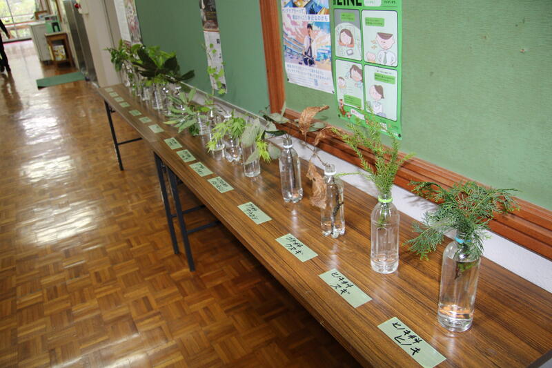 農業鑑定大会に向けて、枝や葉が廊下に並んでいますひらめき