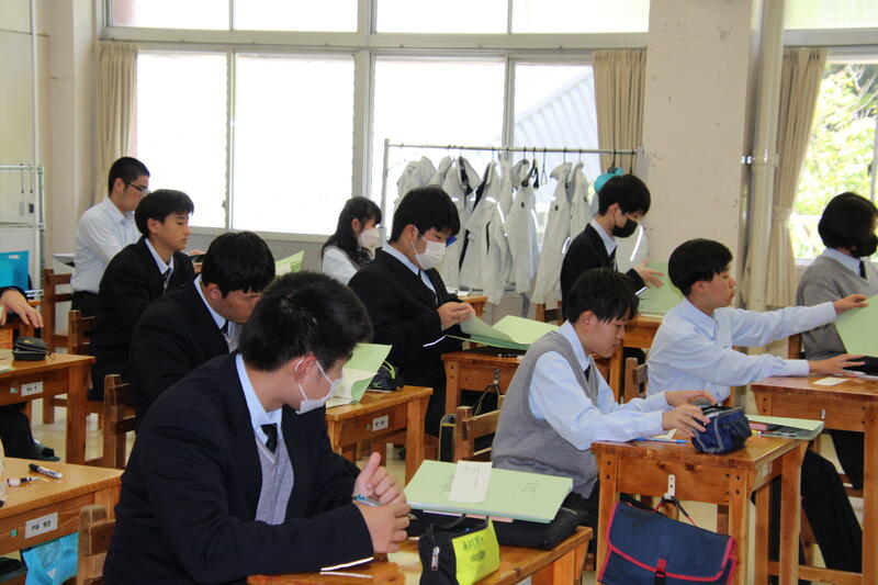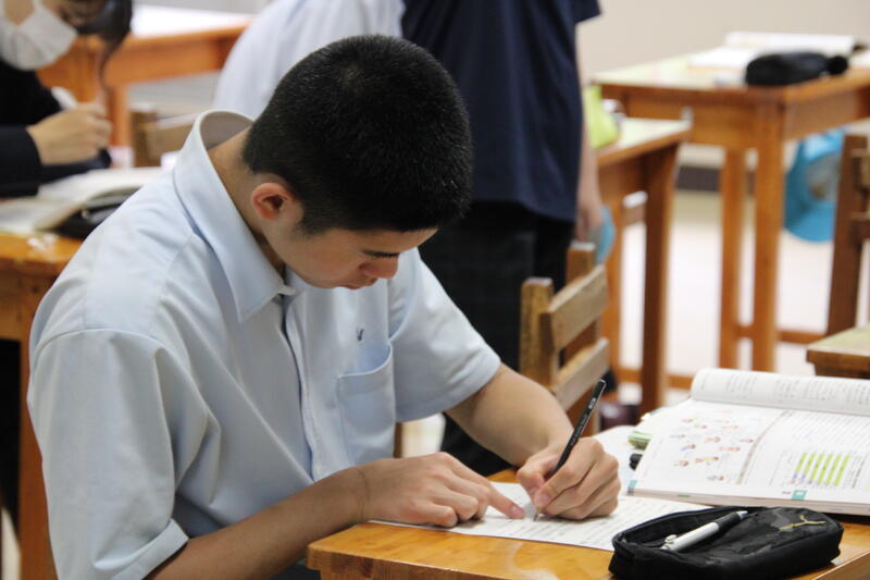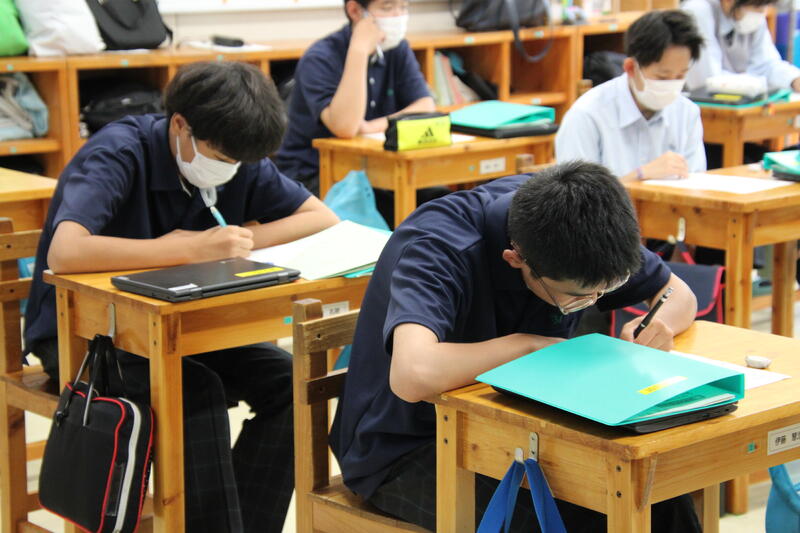 1年生では試験前にファイルをじっくりと見て、試験に備える姿がありました星中間考査の時に比べて、ファイルやノートにまとめようとする意識づけはできてきているようです了解