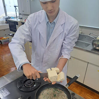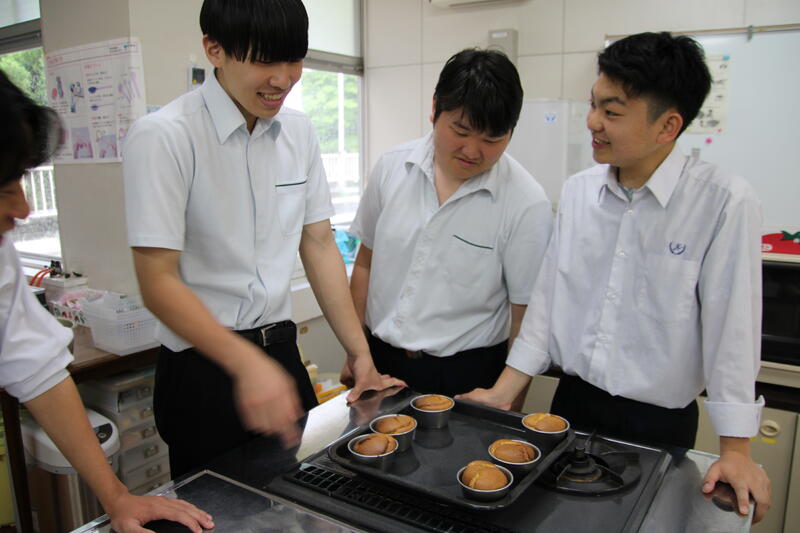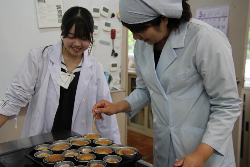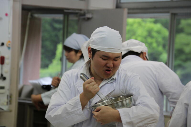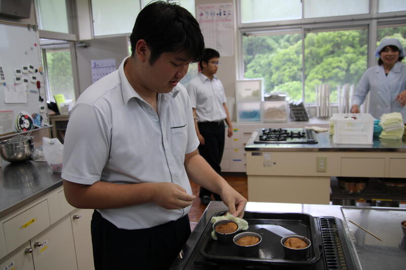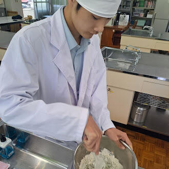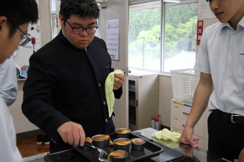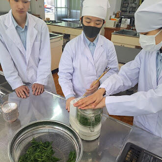 雨が降った金曜日、3年生ライフコースの調理実習では、よもぎを使ったシフォンケーキ作りをしました給食・食事