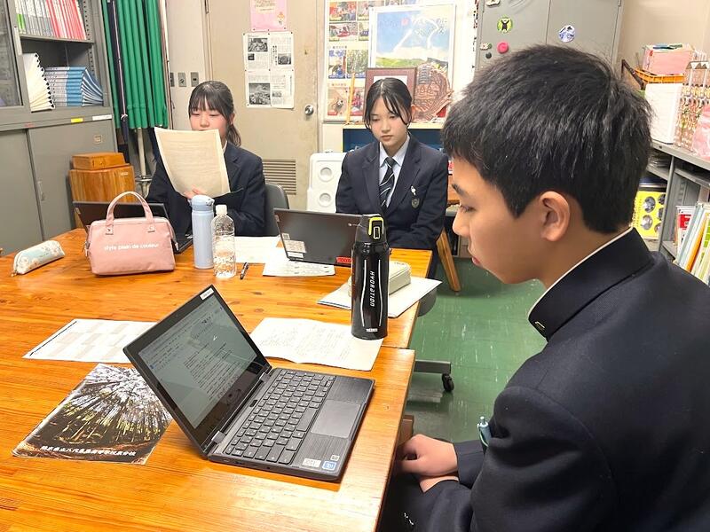 5月に校内意見発表会が行われます晴れ2年生の授業では全国大会の映像を見ながら、校内大会に向けた準備を進めていましたひらめき